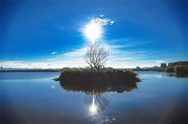 冬季的濕地有著自己的色彩,云影天光倒影在水面上,寂靜、空靈,別有一番韻味,微風中徐徐搖曳的蘆葦,還有草叢中盛開的野花,交叉棧道蜿蜒在一片波光粼粼中,無不訴說著王家堆濕地冬季的故事。