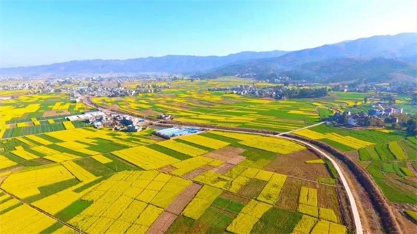 楚雄子午鎮的油菜花,已于近日盛開,花田里蝶飛蜂鳴,花田旁農人忙碌,白墻黛瓦掩映花間,形成一幅鄉村水墨山水畫卷。你可以去尋春色了,去感受“兒童急走追黃蝶,飛入菜花無處尋”的意境。