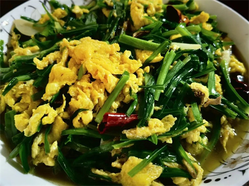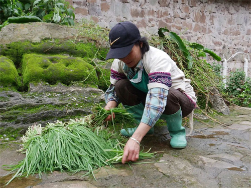 這個季節(jié)的“仙人韭菜”,正是青蔥鮮嫩的時候,只看一眼,就仿佛吃到了滿口清香。正是這種清香的味道,與其他食材搭配在一起,淡者出味,濃者提鮮。當?shù)卮迕衽胫啤跋扇司虏恕弊罱?jīng)典的做法就是將其作為佐料,搭配自家養(yǎng)的土雞蛋,或素炒一盤,鮮得眉毛都掉下來,真可謂農(nóng)家野菜第一鮮。因其只在巖子營有,“仙人韭菜”也成了巖子營的代名詞之一。