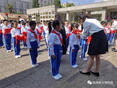 一年一度“六一”至,朝氣風(fēng)發(fā)少年來。在國際兒童節(jié)到來之際,5月底至6月初,來自武成小學(xué)、書林一小、云銅中學(xué)、丘北一中等校的千余名小小少年在各校組織下集體來到西南聯(lián)大舊址,在“一二·一”運(yùn)動(dòng)四烈士墓前舉行少先隊(duì)員入隊(duì)儀式和少先隊(duì)主題活動(dòng)。