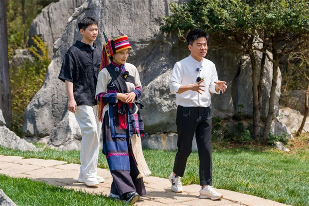 首日直播聚焦世界自然遺產石林、紅河彌勒可邑小鎮。董宇輝與身著盛裝的“阿詩瑪”向導穿行于億萬年前形成的喀斯特