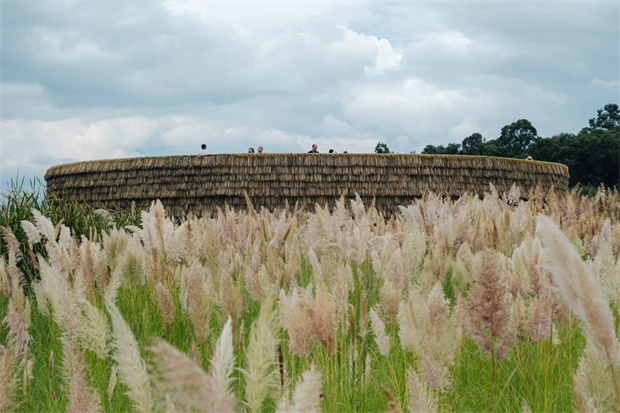 草之橋獨特的"鳥巢"觀景臺如同優雅的雕塑,懸在蒲葦海洋之上。蒲葦花序蓬松如絮,在風里搖曳著細碎的光,與觀景