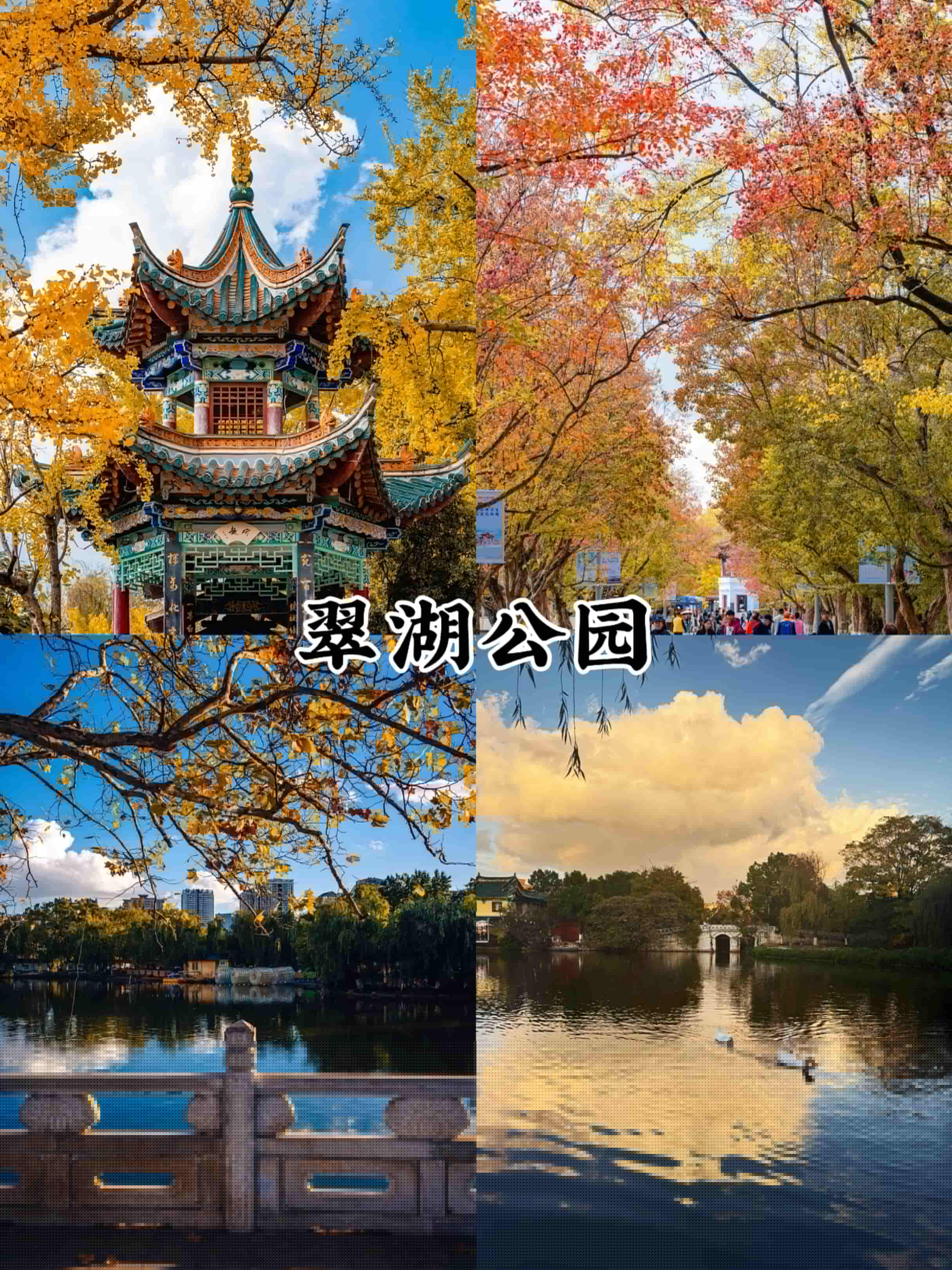 翠湖公園:毗鄰云南大學,是昆明“城在景中”的典范。10月底雖未到紅嘴鷗大規模遷徙季,但已有少量先頭部隊抵達,可提前體驗喂鷗樂趣。公園免費開放,環湖散步或騎行皆宜,推薦從南門進入,順路品嘗翠湖邊上的**翠湖南門豆花米線**,嫩滑豆花搭配甜咸醬汁,地道昆明風味。
