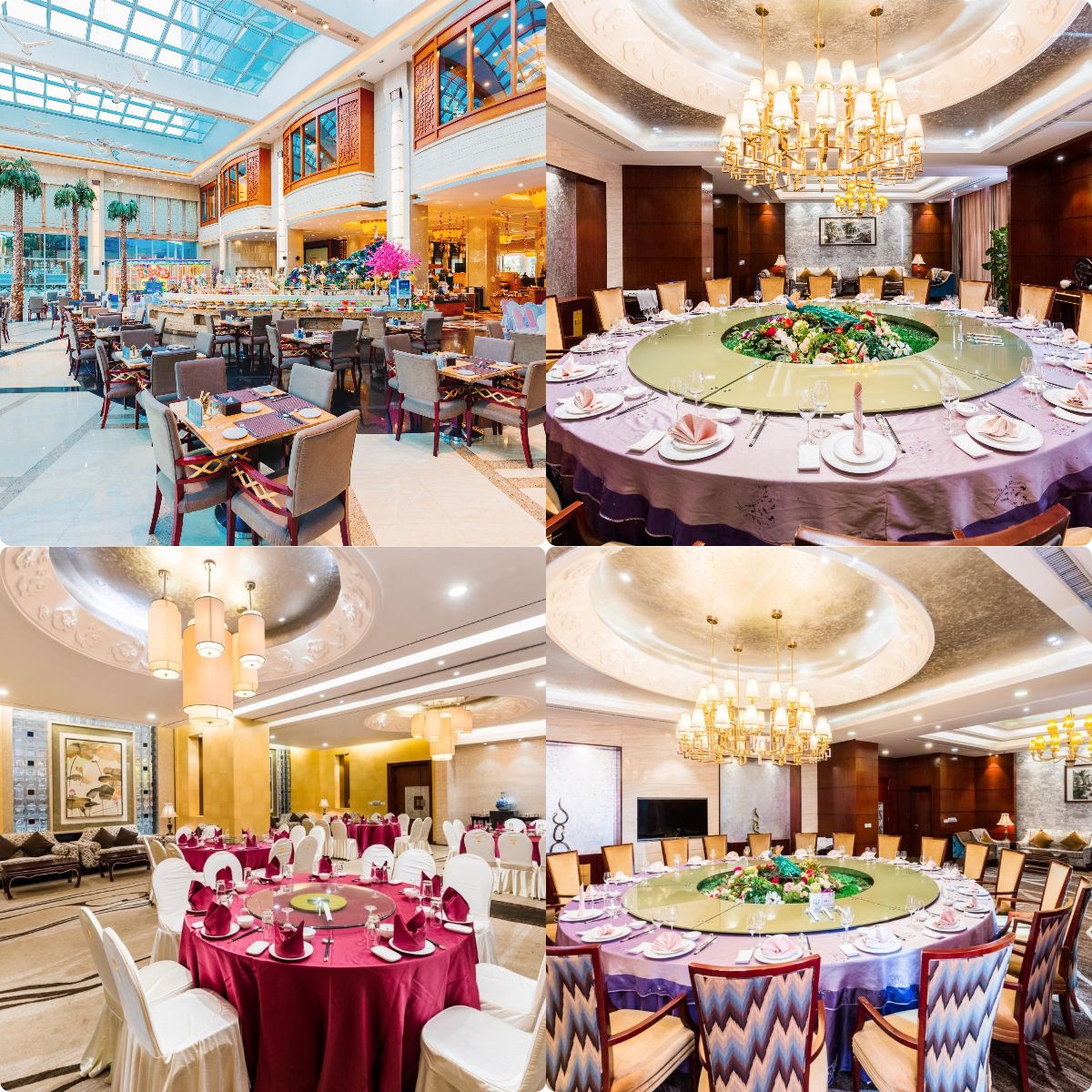 飯店的餐飲體驗豐富多樣。西餐廳設有 300 個座位,為您提供精致的西式美食。超豪華中餐廳更是亮點十足,大廳可容納 300 人同時進餐,26 間包間環境典雅,私密性與開放性完美融合。在這里,您能品嘗到色香味俱全的南北佳肴,領略博大精深的中華飲食文化。