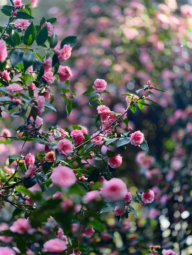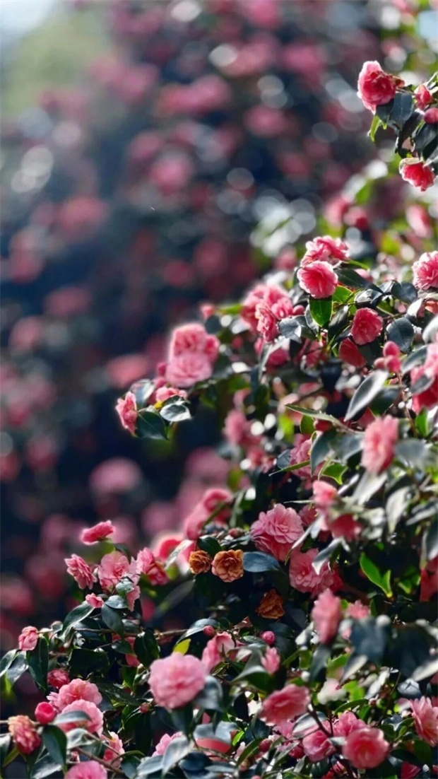 桃紅色的花朵如瀑布般從枝頭傾瀉而下,層層疊疊,熱烈而張揚。隨手一拍,便是一幅無需濾鏡的質感大片。