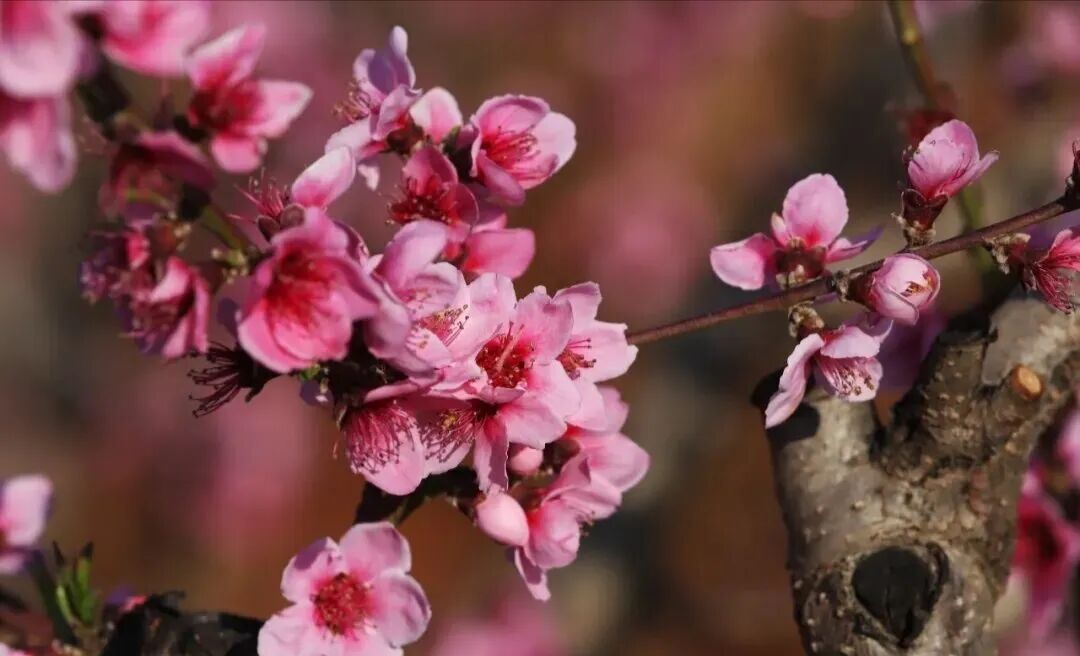 深紅、淺粉的桃花層層疊疊