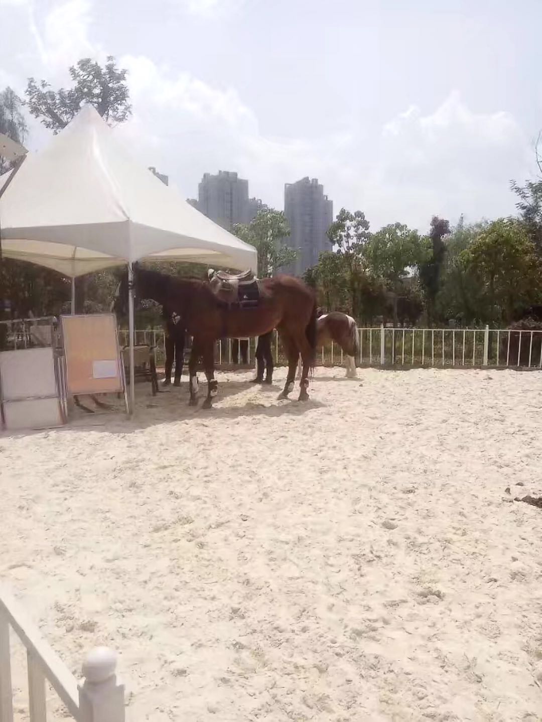 在公園內,有一塊場地供游人騎馬,是公園的一大亮點。