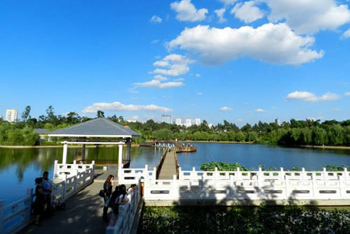 公園占地十六萬(wàn)平方米,其中水面積五萬(wàn)余平方米,綠化率達(dá)百分之七十,是一座以自然風(fēng)光為主體的現(xiàn)代園林公園。同時(shí)也是云南省首個(gè)法制公園。