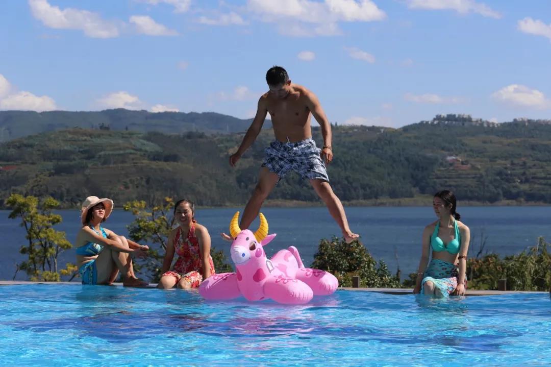 網(wǎng)紅無邊際泳池水面與陽宗海齊平