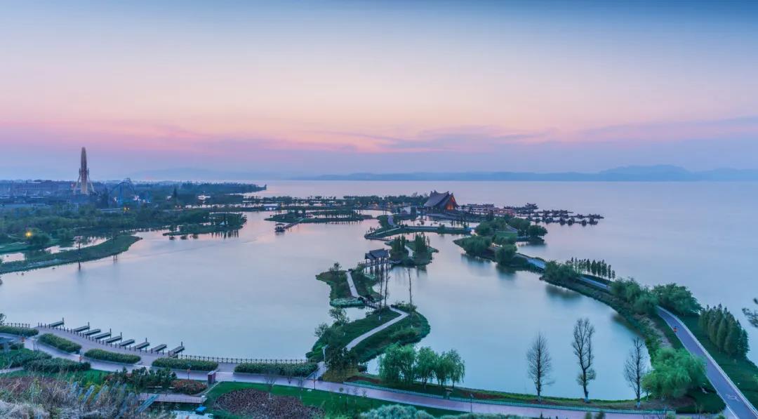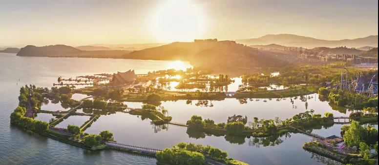 整個濕地園區分為“昆明湖”、“牽星海”、“采蓮塘”三大主題區域,融合了“漢武開滇”、“鄭和七下西洋”、“陳圓圓和吳三桂”等云南經典故事,除去美景之外,更有深厚的歷史意義。