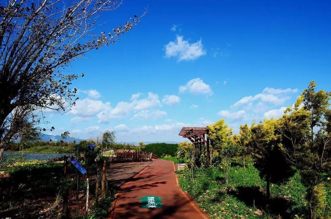 湛藍的滇池水倒映著岸邊的樹木,沐浴在陽光中的小木屋,日復一日小木屋沾染了海的味道,同時也沁滿了游客的歡笑。公園處在中國西部最大的候鳥遷徙通道上,每年都會吸引多種候鳥來此越冬。如果運氣好的話,還能見到野天鵝呢!除了沙灘棧道,還有浩瀚水景、悠悠綠植、蝶繞繁花、水榭荷香。