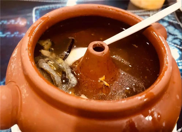 水在液態與氣態來回轉換的過程中,盡可能多的包裹了食材和藥材的精華。汽鍋雞的湯汁不會很多,正所謂濃縮的才是精華,限量版的美味更讓人珍惜。