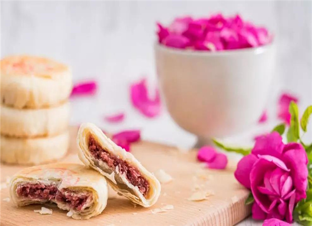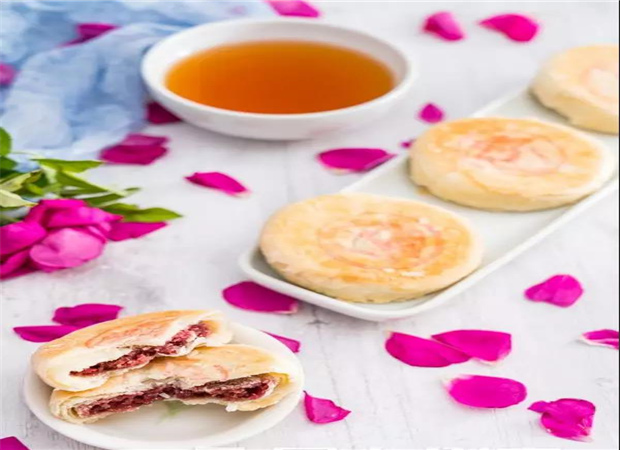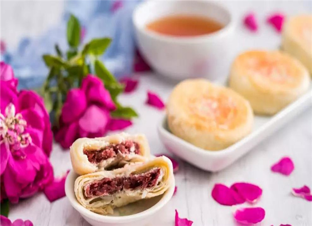 鮮花餅是以云南特有的食用玫瑰花入料的酥餅,外皮酥香,鮮花餡料滿滿的都是清香,仿佛能吃出新鮮花瓣的柔嫩。