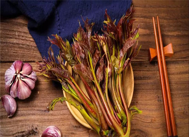 香椿是春天獨有的蔬菜,稱為“春菜”。每年春季谷雨前后,香椿發的嫩芽可做成各種菜肴,它的顏色猶如瑪瑙、翡翠,而且香味濃郁。