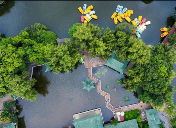 公園以翠湖為中心,由縱貫南北的阮堤和直通東西的唐堤,將翠湖分成五片景區。