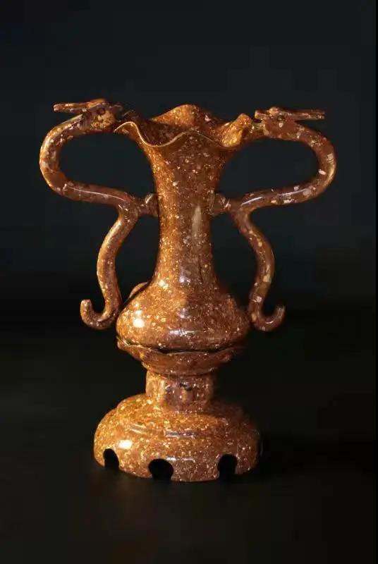 張偉介紹,斑銅產品有生斑和熟斑,生斑采用高品位自然銅純手工鍛打而成,產品多為花瓶、香爐、茶壺等傳統器型,由于原材料稀缺,工藝復雜,用時較長,屬于高檔藝術收藏珍品,價格從幾萬到幾十萬元不等。熟斑是銅基合金材料加工制作成型,現開發的商品有人物、器皿、動物等具有當地特色的旅游產品,熟斑原材料充足,制作產品周期較生斑短,價格也相對低一些,從幾百到幾千元不等。熟斑可以制作比較大的產品,彌補了生斑做不了大件的不足。