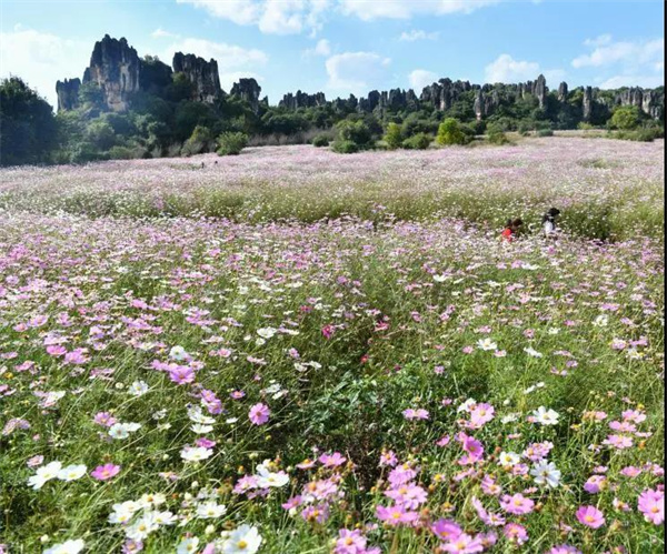 每年從1月到12月,在昆明的大街和公園里可欣賞到不同的鮮花,茶花、蘭花、梅花、桃花、櫻花、郁金香、梨花、海棠、牡丹、杜鵑等等,正所謂“月月有花開,花開各不同”。10月的昆明依然花開不敗,我們可以到大觀園賞桂,石林和嵩明觀菊。