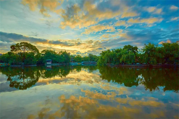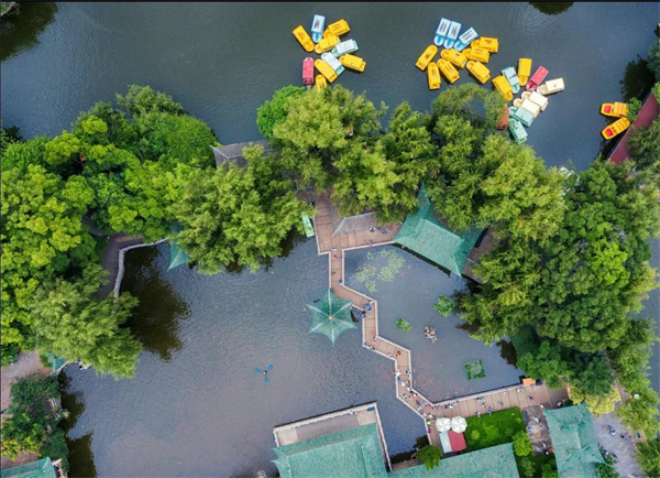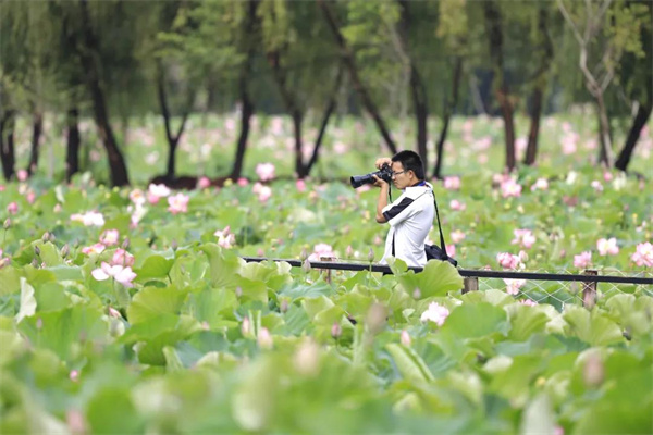 湖內(nèi)種有荷花,夏季來(lái)臨時(shí),這里成為人們賞荷花的佳地。“六月荷花香滿湖,紅衣綠扇映清波。”那蓮葉田田,菡萏妖嬈的畫面,被攝影師留在了一張張照片中。