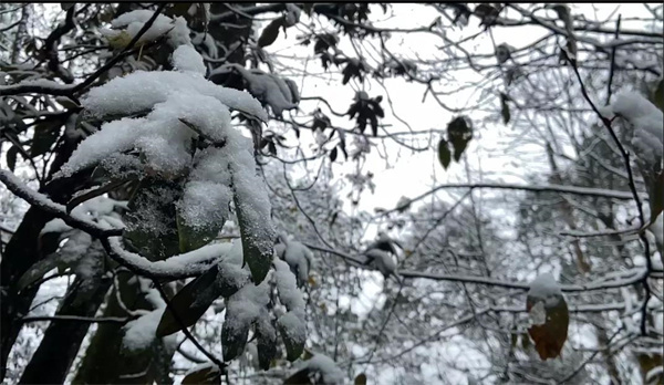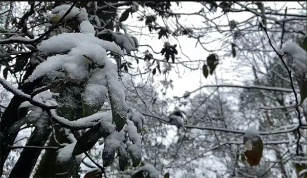 跟隨手機的鏡頭,美好的景致隨處可見。雪花猶如舞動的精靈,粉飾著這玉砌冰雕的童話世界。彩林尚在,冬雪降臨,金色的落葉掩蓋在白雪之下,活潑中不失一份優雅,彩色幻境變成冰封的仙境。枯黃的山林鋪滿層層白霜,嫻靜中不失一份端莊。色彩絢麗的山林在皚皚白雪的映襯下,分外妖嬈,留戀枝頭的彩葉也沒料到,冬風中的倔強讓它與雪有了一次難得動人的邂逅。秀麗挺拔的樹木在一片茫茫白雪中,盡情享受著洗禮,涵養著春天的生機。濱湖步道之上,天地茫茫,碧波無聲,幾艘游船隨時光飄蕩;古色古香的董家茶園依舊充滿著塵埃中的禪意;仙女湖更像是一片驚世的天空之鏡,將冬天的凜冽和溫柔結合起來,在五光十色與白雪皚皚之間的來回切換,有如夢境般的精彩。回首間,披上白雪羽衣的銅鑼壩竟別有一番風味。
