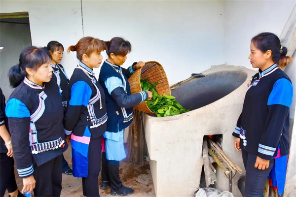 過去,春夏采摘的嫩茶葉大部分做成普洱茶或者綠茶,售賣后換取生活費,茶農舍不得喝,就把秋后的老葉子制作成帕卡茶自己喝。老葉子葉桿長甜味足,消炎降火,對于吃鑼鍋飯的農戶來說再合適不過,帕卡茶就這樣傳承下來了,還逐漸發展出了獨特的加工工藝和用陶罐煨茶喝茶的方法。帕卡茶制作工藝現已列入普洱市非遺傳承項目。下面,讓我們跟著江城帕卡茶傳統手工制作技藝傳承人張麗娟一起,看看地道的帕卡茶是怎么制作出來的吧。