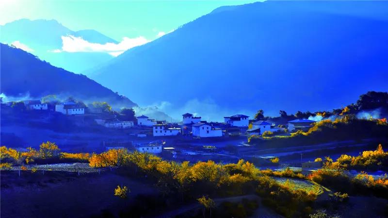牦牛走過香巴拉的山崗?fù)虿贿h處的家: