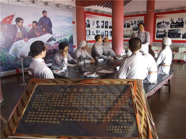 三元宮愛國主義教育基地以大量的圖片、文字、革命文物和文獻資料等,生動再現了三元宮會議的歷史。在中國歷史上,三元宮會議是紅軍長征途中召開的一次重要會議,這次會議正確分析了中央紅軍當時所處環境及敵我斗爭形勢,作出了西進北上迅速搶渡金沙江,到川西建立蘇區的重大戰略決策,對保存紅軍有生力量,實行戰略轉移,順利渡過金沙江,都具有重大的決定性的意義。