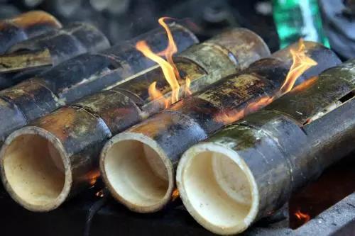 竹筒雞是云南哈尼族的傳統名吃,利用竹筒烹飪,歷史久遠時至當代。云南的各少數民族仍保留竹筒烹飪的傳統方法,竹筒雞既有雞肉之鮮甜,又有青竹之清香,滋嫩軟糯,制法獨特,古老樸實。