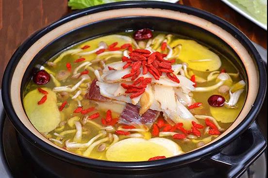 昭通盛產天麻,而且以個大,肥厚飽滿,色黃白明亮,品質優異聞名于世。昭通天麻火腿雞,采用火腿和雞,附以天麻、三七為主的二十多種純天然名貴中藥精心烹制而成。此佳肴香氣撲鼻,味道鮮美,清淡爽口,口感極佳。