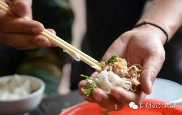 過手米線是德宏州阿昌族特有的小吃,以手抓食的進食方式在云南眾多民族吃米線中尚屬鮮見,不過味道可稱得上佳肴。