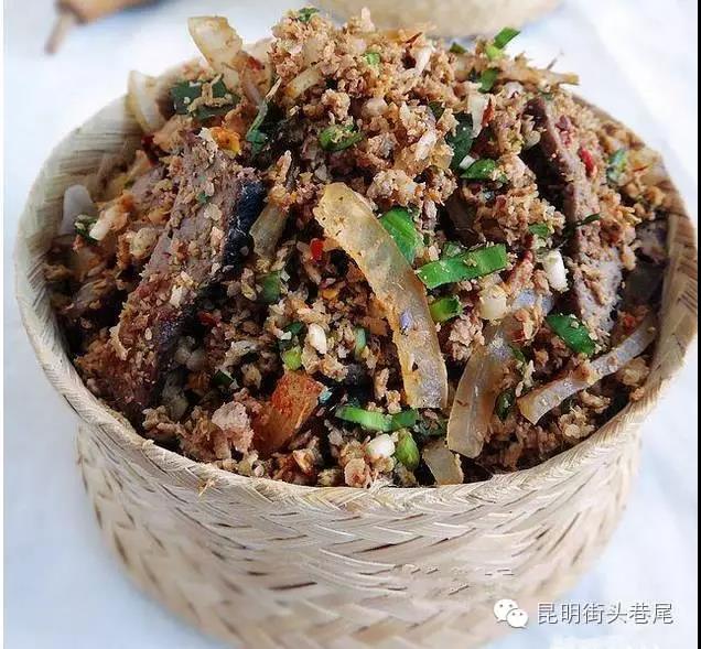 撒撇是傣家人用來宴請賓客的世傳名菜,比較有名的有檸檬撒和牛撒撇兩種,制法各異但口感都很好。