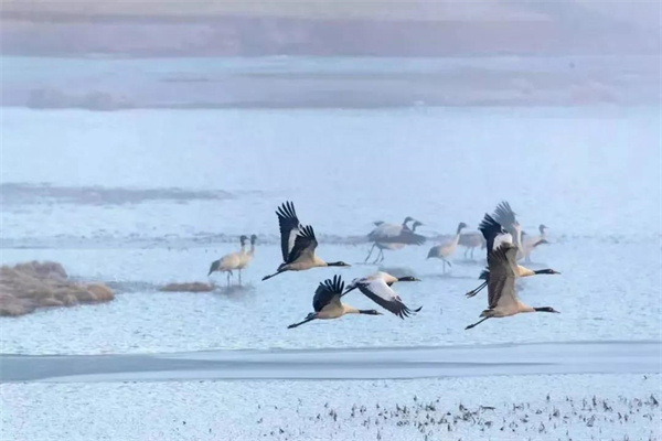 一群黑頸鶴帶著思念飛回曲靖會澤