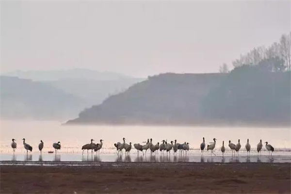 秋天有仙鶴滿載思念而歸的光影畫卷