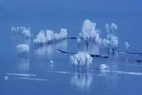 一幅由藍(lán)天、云海、白雪、霧凇、